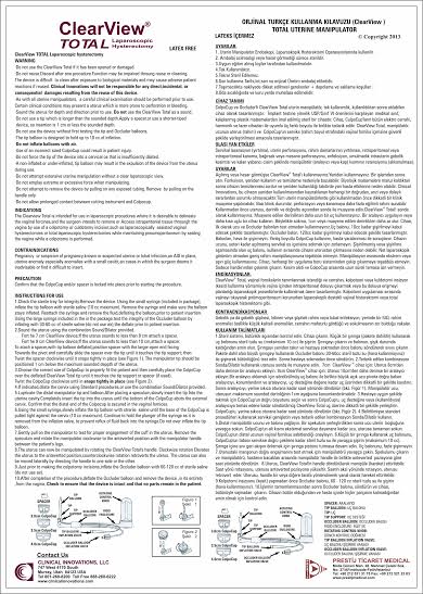 (ClearView TOTAL ) UTERINE MANIPULATOR Laparoskopik Histerektomi Operasyonlarında kullanılır. TOTAL Laparoscopic Hysterectomy